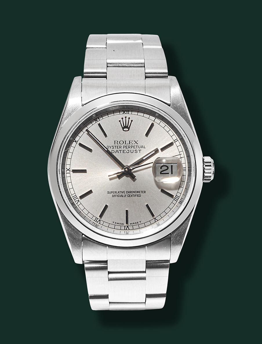 Rolex Oyster Perpetual DateJust, year 2001, steel case with a diameter of 36mm, sapphire crystal, silver dial, date display at 3 o’clock, automatic movement Rolex caliber 3135, steel Oyster bracelet, watch supplied with our box and guarantee