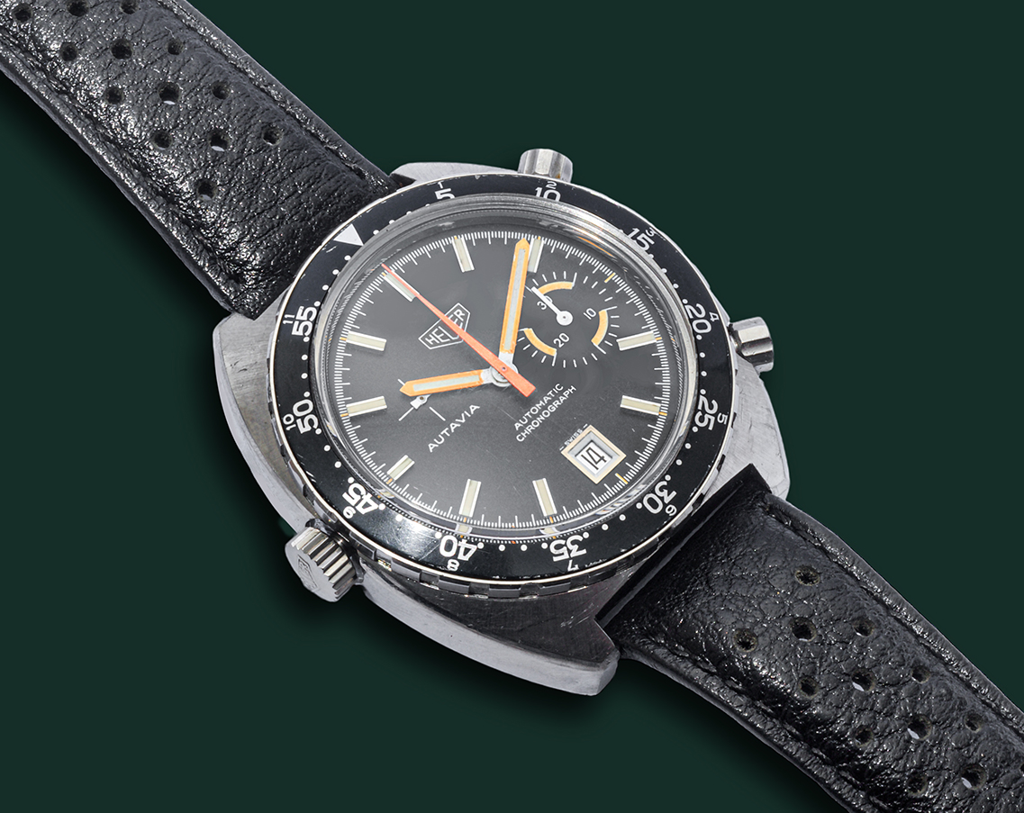 HEUER AUTAVIA Ref. 1563 Home Orologi Heuer Autavia, referenza 1563, anno 1972, cassa in acciaio con diametro 42mm, movimento automatico calibro 15, quadrante nero con datario a ore 6, orologio corredato da nostra scatola e garanzia. Prezzo: €. 6.000,00