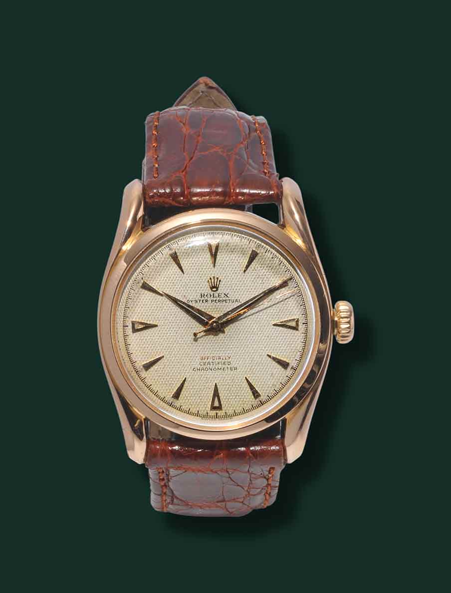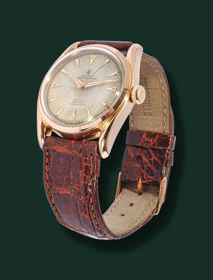 Rolex Oyster Perpetual Bombè, referenza 6090, anno 1952, cassa in oro rosa 18 Kt con diametro 34mm,