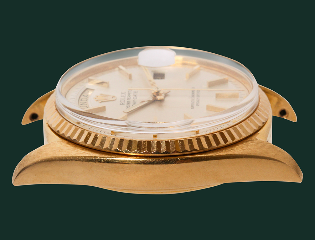 ROLEX DAY-DATE 1803 ORO GIALLO 18K Home Orologi ROLEX DAY-DATE 1803 ORO GIALLO 18K Rolex Day-Date referenza 1803 seriale 303 XXX cassa in oro giallo18k. Quadrante bianco, meccanismo calibro Rolex 1556 Anno 1972 Cinturino in pelle