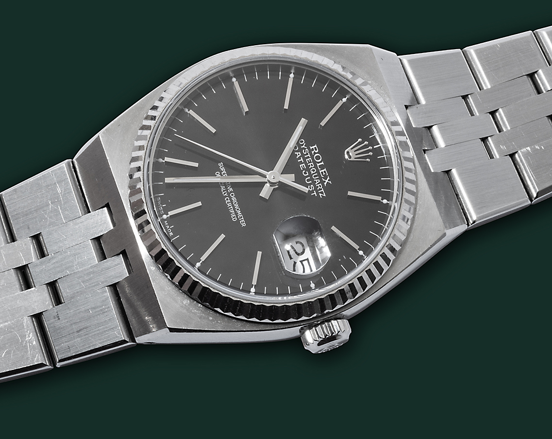 ROLEX OYSTER QUARTZ Ref 17014A Home Orologi Rolex Oyster Quartz, referenza 17014 A, seriale P 502XXX, anno 2000, movimento quarzo calibro Rolex 5025, quadrante nero, cassa e bracciale in acciaio. Orologio in perfette condizioni usato pochissimo. Corredato di garanzia negozio. Prezzo: VENDUTO