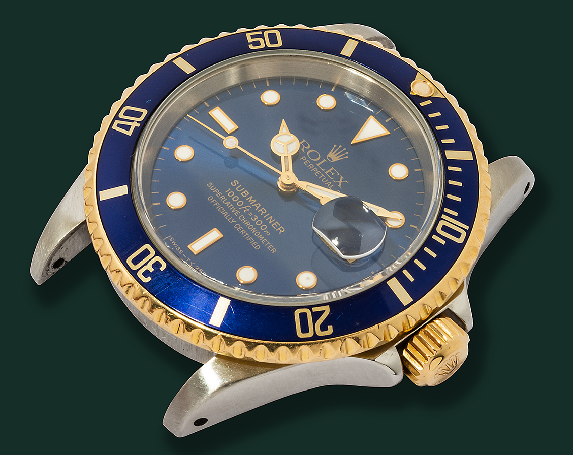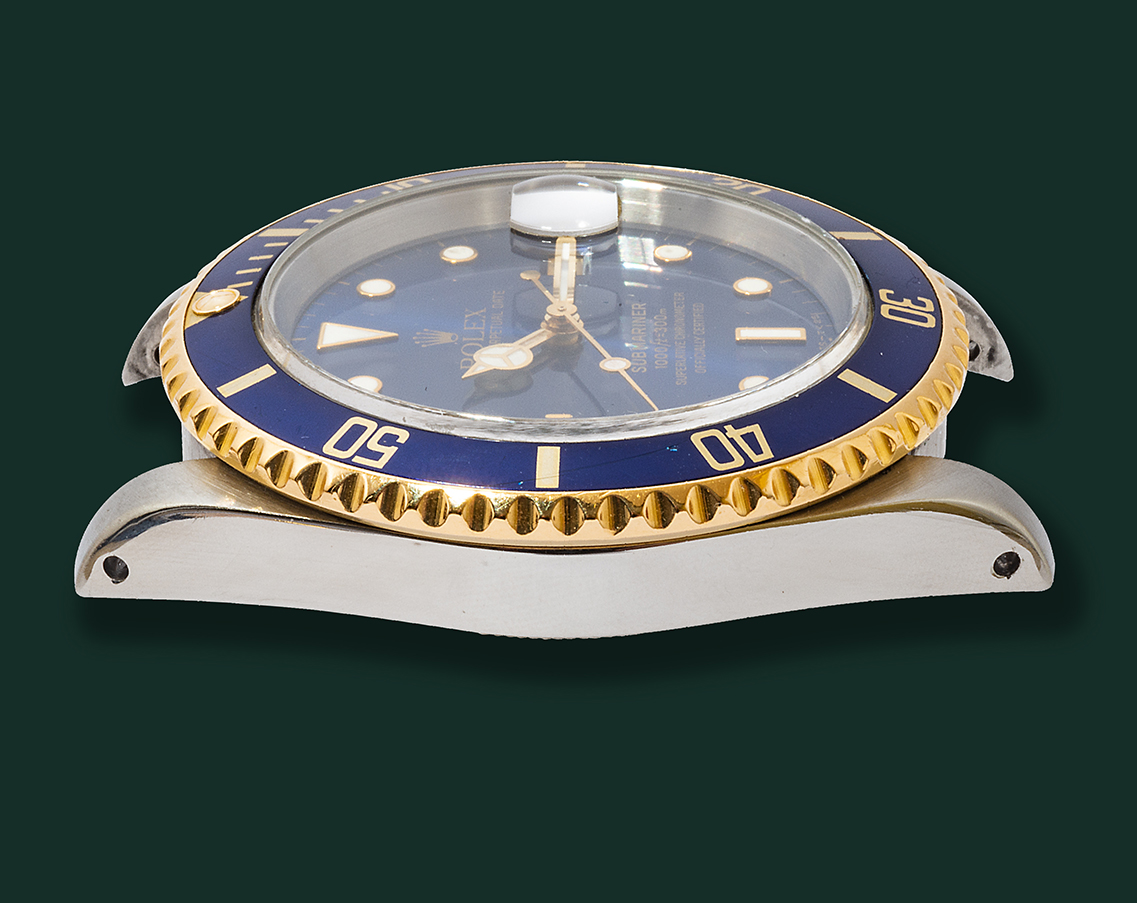 Rolex Submariner Date, referenza 16613, anno 1997, acciaio oro, quadrante blu, in perfette condizioni, bracciale acciaio oro Oyster, movimento automatico calibro Rolex 3135. Orologio corredato di garanzia originale e garanzia nostra.