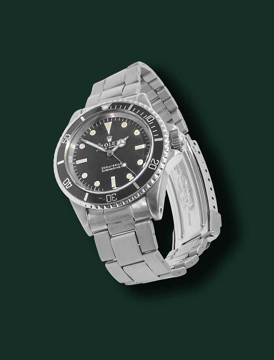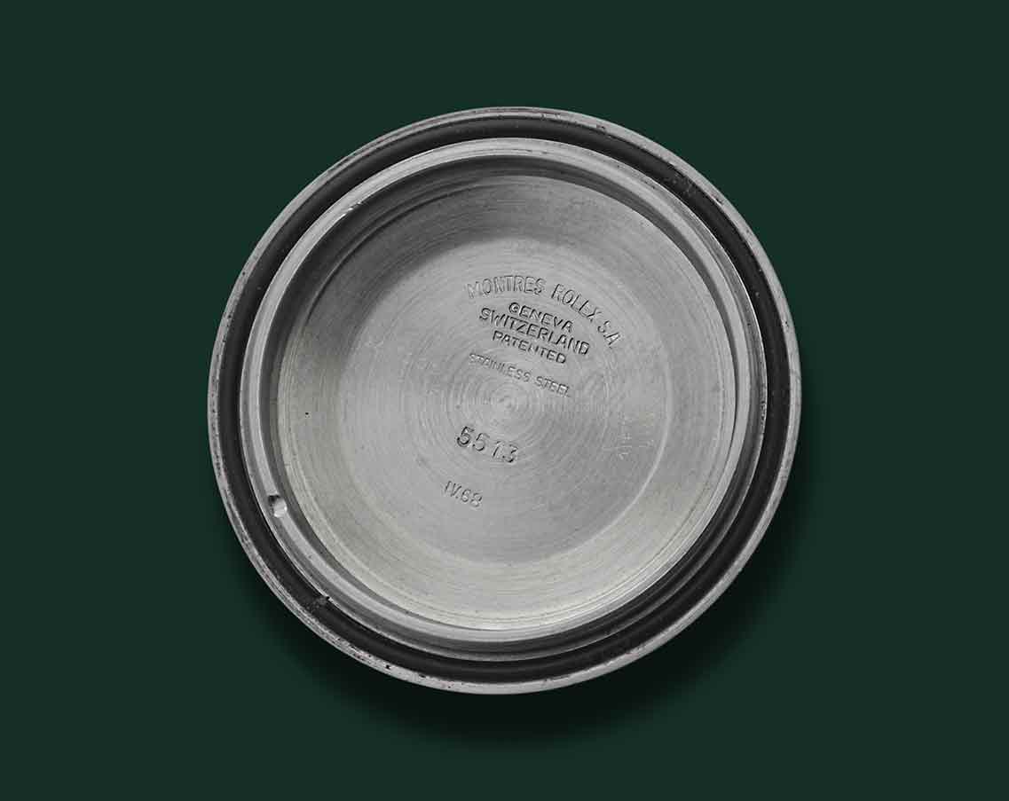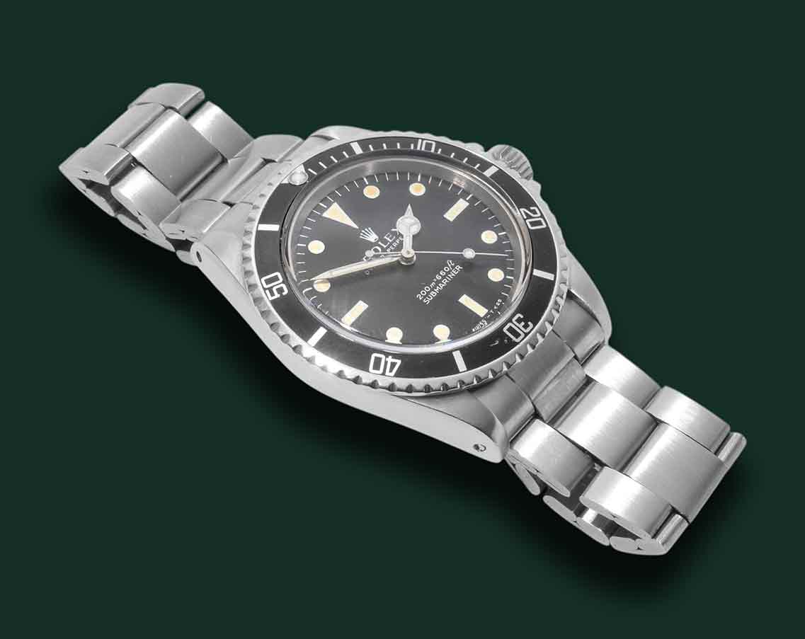 Rolex Submariner no Data, referenza 5513, anno 1969, cassa in acciaio con diametro 40mm, vetro esalite, quadrante nero con indici pallettoni, ghiera non coeva, movimento meccanico a carica automatica calibro Rolex 1520, bracciale Oyster in acciaio ripiegato, orologio corredato da nostra scatola e garanzia