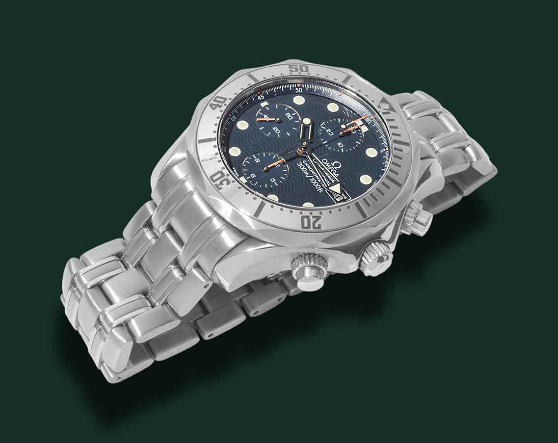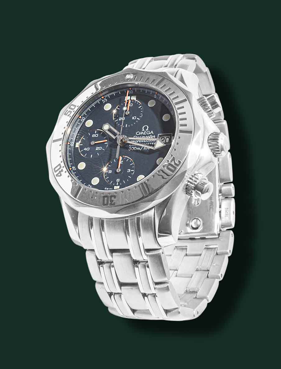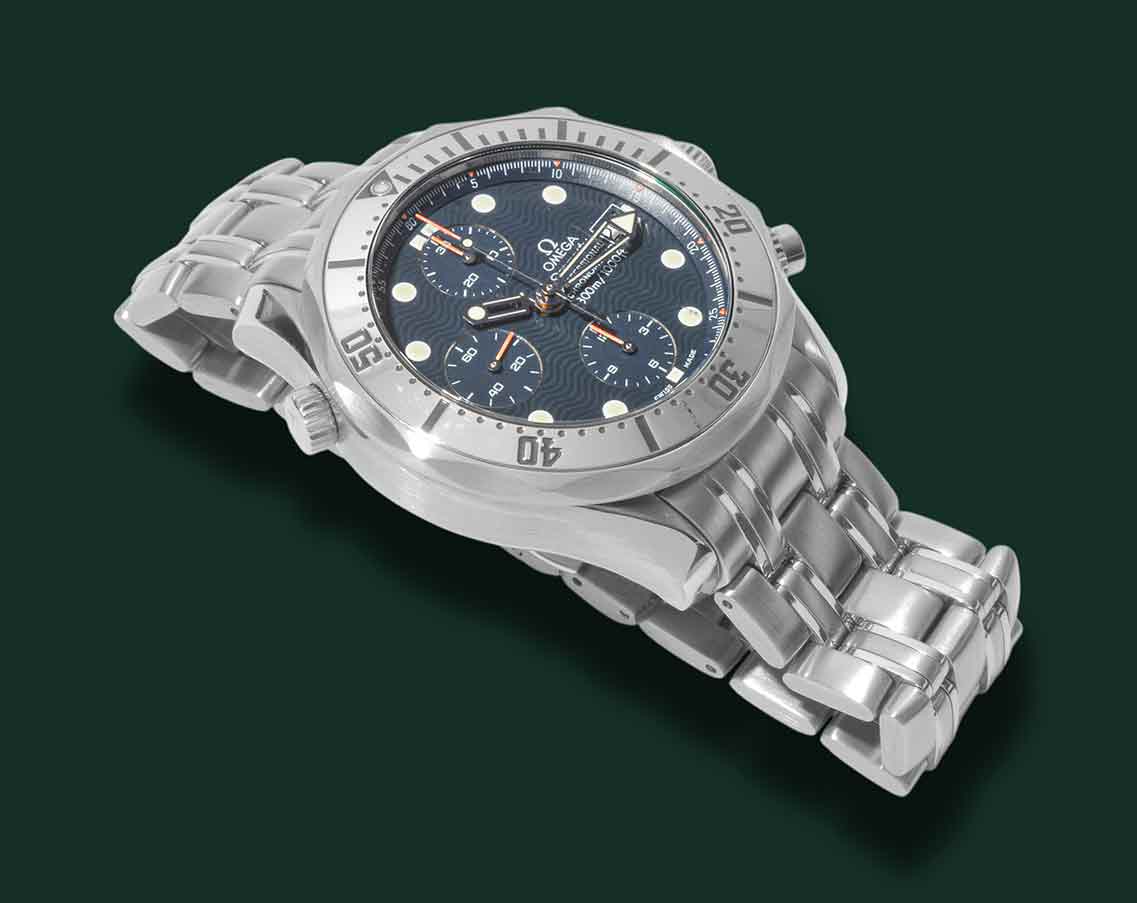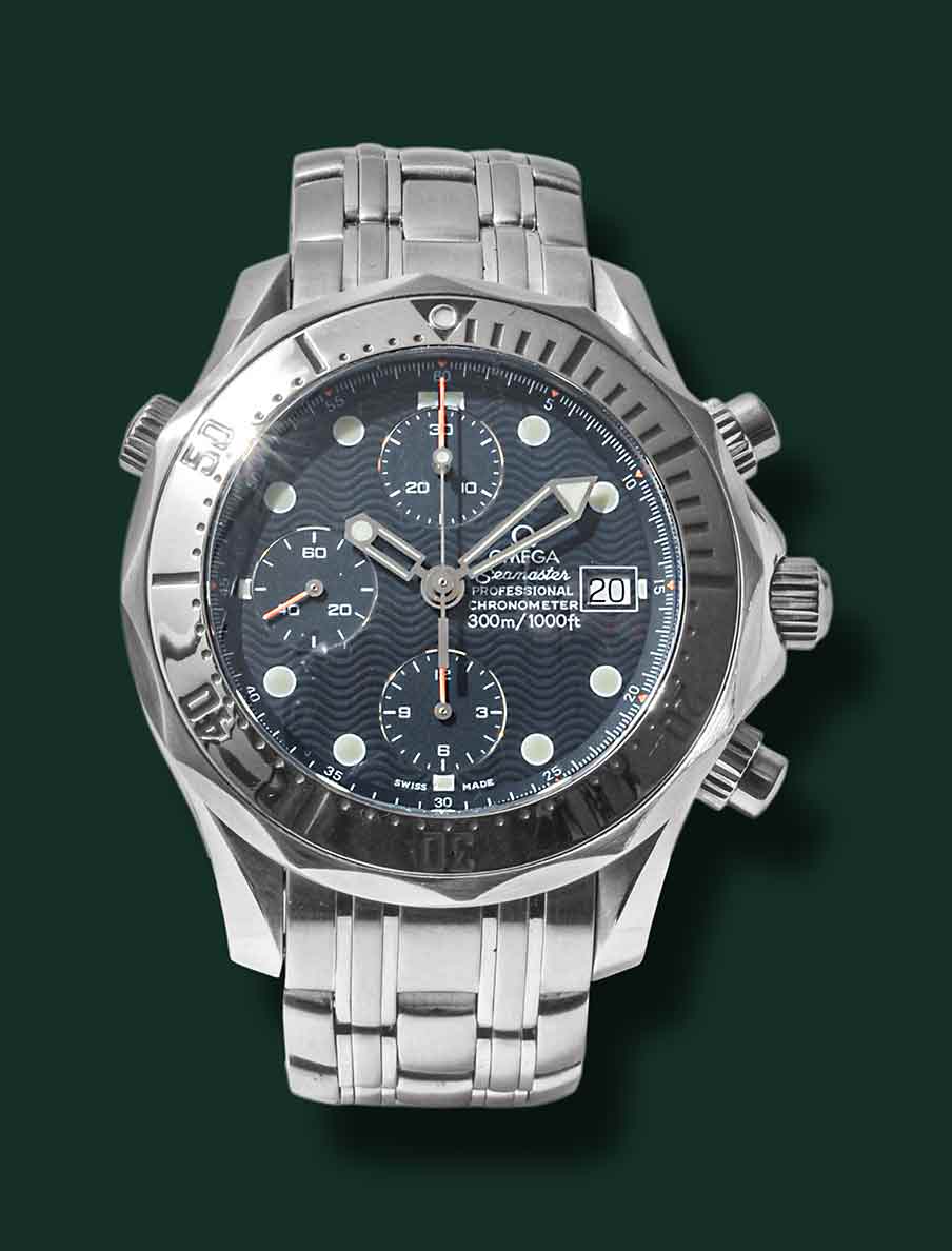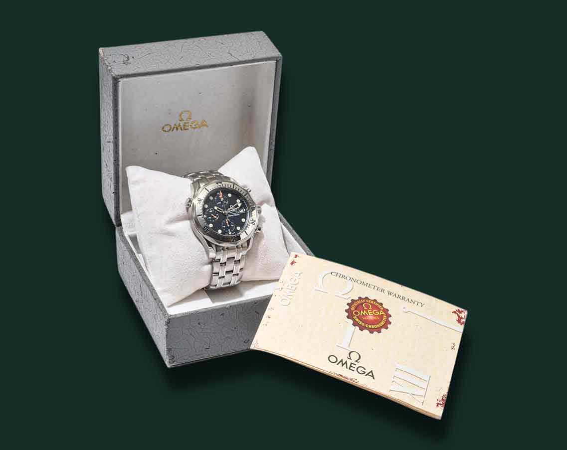 Omega Seamaster Diver 300 M, referenza 2598.80.00, cassa in acciaio con diametro 42mm quadrante blu, funzione cronografo, vetro zaffiro, movimento automatico calibro Omega 1164, bracciale in acciaio Omega, orologio corredato di scatola e certificato di cronometria Omega, nostra garanzia.