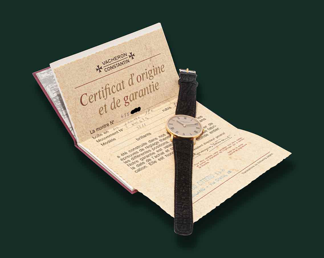 Vacheron & Constantin Classic, referenza 7811, anni170, cassai oro 18Kt, con diametro 33mm, vetro esalite, quadrante champagne con indici a numeri romani serigrafati, movimento meccanico a carica manuale calibro K1014, cinturino in pelle scamosciata e fibbia in oro Vacheron Constantin, orologio corredato da garanzia originale Vacheron & Constantin e nostra scatola.
